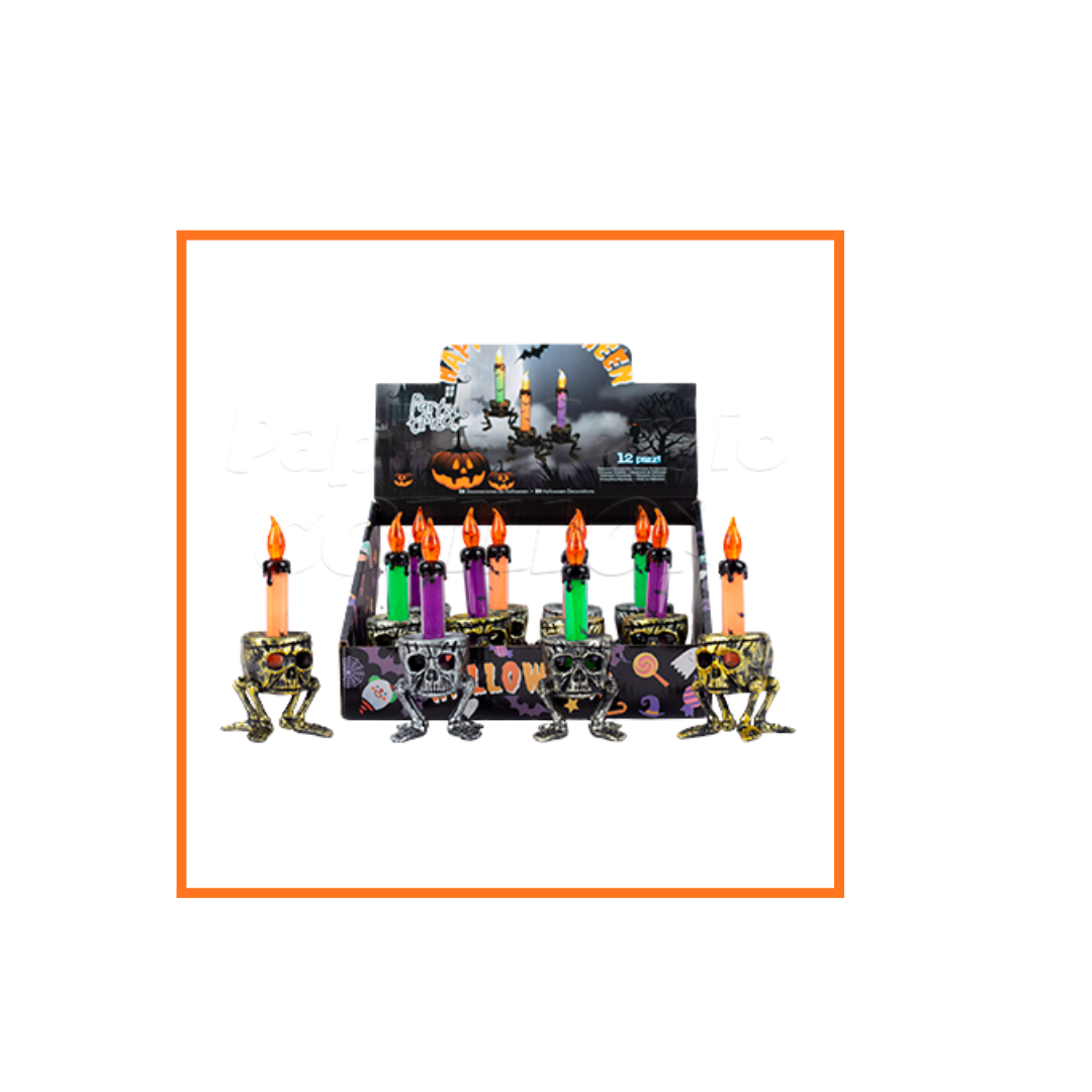 CALAVERA CON PIES VELA LED ADORNO
